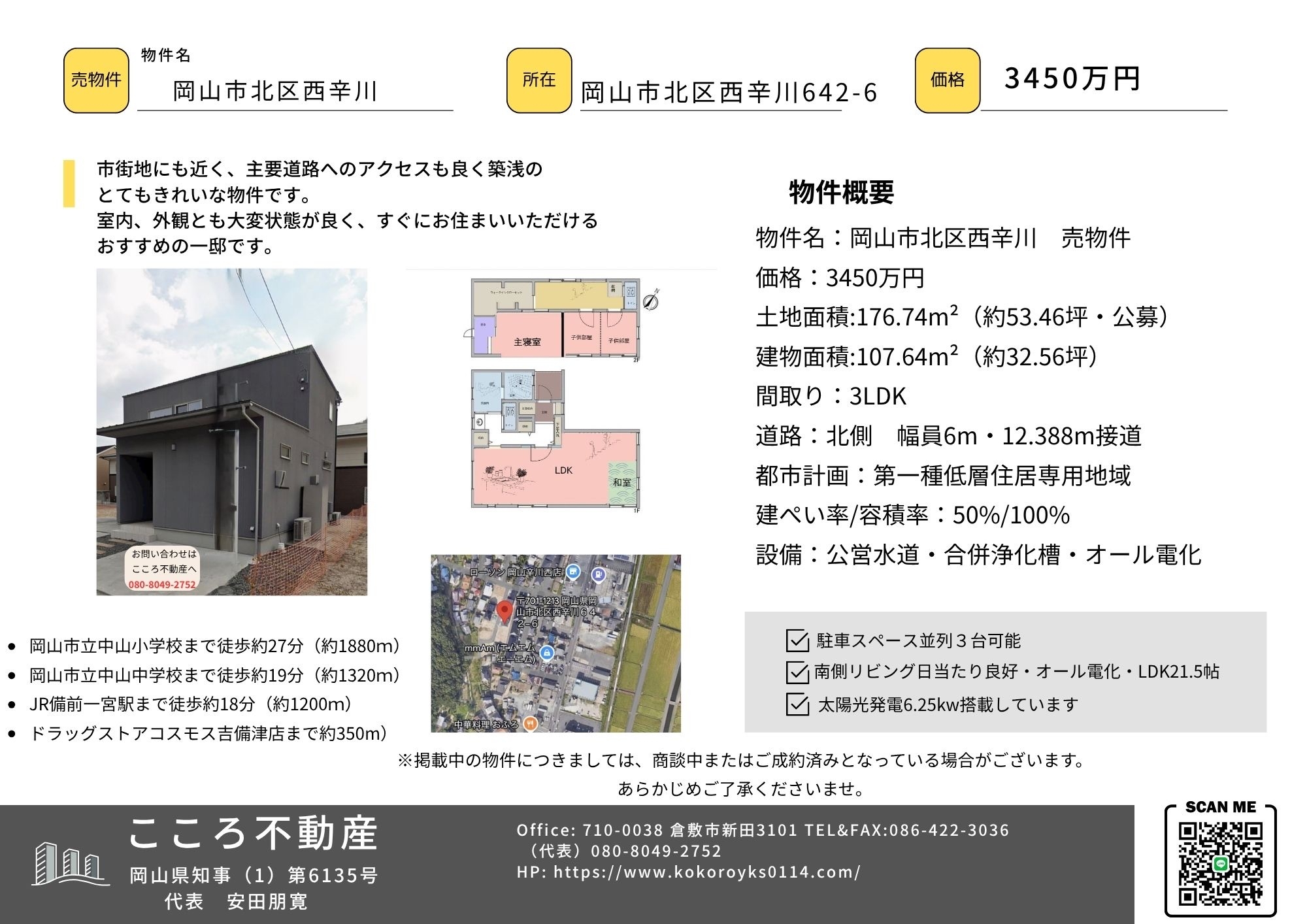 - こんにちは。こころ不動産です。 購入前でも無料でご相談OKです。 岡山・倉敷の最新物件や販売予定情報を、地元ならではの細かな視点でご案内します。 「SUUMO」「アットホーム」で見た物件も大歓迎です。仲介手数料のご相談や紹介特典もご用意しています。 安心できる取引と笑顔のために こころ不動産にお気軽にご相談ください✨