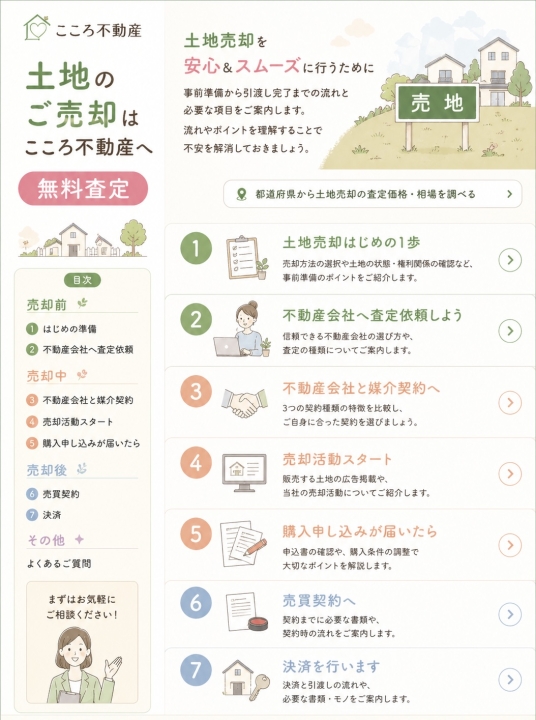 不動産に、こころを。 ひとりで悩む前に、こころ不動産へ。 売却・相続・空き家・農地・山林のご相談は、こころ不動産へ お家や土地のことは、 「何から始めたらいいのか分からない」 「このままで大丈夫なのか不安」 「売るべきか、残すべきか迷っている」 など、簡単には答えが出ないことも多いものです。 こころ不動産では、売買だけでなく、相続、空き家、農地、山林、調整区域、活用相談、アパートの見直しまで、幅広いご相談に対応しています。 まずはしっかりお話をお伺いし、お客様それぞれの状況に合わせて、分かりやすく丁寧にご提案いたします。 こんなお困りごとはありませんか? ・売却を考えているけれど、何から始めたらよいか分からない ・相続した家や土地をどうしたらよいか分からない ・空き家や空き地をそのままにしていて不安 ・農地、山林、市街化調整区域のことで悩んでいる ・他社に相談したけれど、むずかしいと言われた ・売るべきか、活かすべきか迷っている ・アパートや事業用不動産の今後を見直したい こころ不動産にできること ・売却、購入、相続のご相談 ・空き家、空き地、農地、山林の整理や活用提案 ・調査、資料収集、現地確認 ・権利関係や関係者調整のサポート ・売買、活用、管理、解体などの方向性提案 ・売却査定や進め方のセカンドオピニオン ・アパート、事業用不動産の見直し相談 こころ不動産が大切にしていること まずはしっかりお話を聞くこと。 押しつけではなく、一緒に考えること。 むずかしいことも、できるだけ分かりやすくお伝えすること。 小さな会社だからこそ、ひとつひとつ丁寧に向き合うことを大切にしています。 まずは、お気軽にご相談ください 「こんなことを相談していいのかな?」 そんな内容でも大丈夫です。 空き家・農地・山林・相続のご相談も、お気軽に。 不動産に、こころを。こころ不動産
