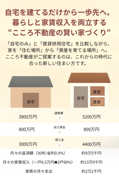 - おはようございます。こころ不動産です。 来年からコンサルティング型デベロッパーとファンドマネジメントの機能を融合させた新たなビジネスモデルを本格的に展開していきます。このモデルを通じて、お客様に最適な土地活用や資産運用の提案を行い、より一層の価値創造を目指していきます。計画用地の仕入れや一般業者様への土地提供、仲介業務に加え、購入後の賃貸経営に関しても総合的なサポートを行っています。市場性や都市計画、将来性などを考慮し、土地の持つポテンシャルを最大限に引き出す投資計画を提案しています。